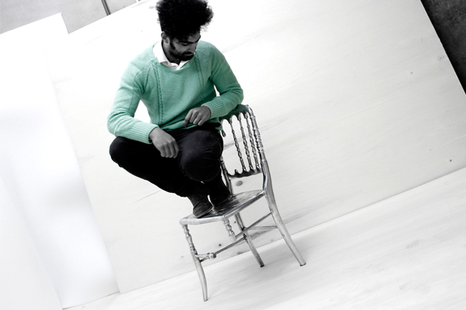 Marco has conceived the exclusive Emporium chair by questioning the notion of space, experimenting with material, and playing with colour. The piece is made in aluminium with a particular detail – it only has three legs.