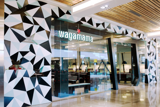 This great exterior of Wagamama at Westfield Stratford City draws the eye, utilising three shades of Corian in Glacier White, Mint Ice and Nocturne, making the space look inviting and trendy.
