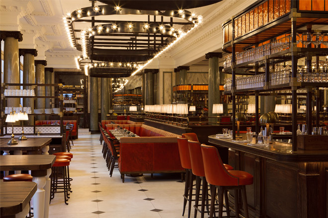 The recently-opened Holborn Dining Room at Rosewood London offers a menu of British classics with a twist. Its lighting, which was manufactured by Dernier & Hamlyn, complements this philosophy with six eye-catching blackened steel oval chandeliers, some 7m long.