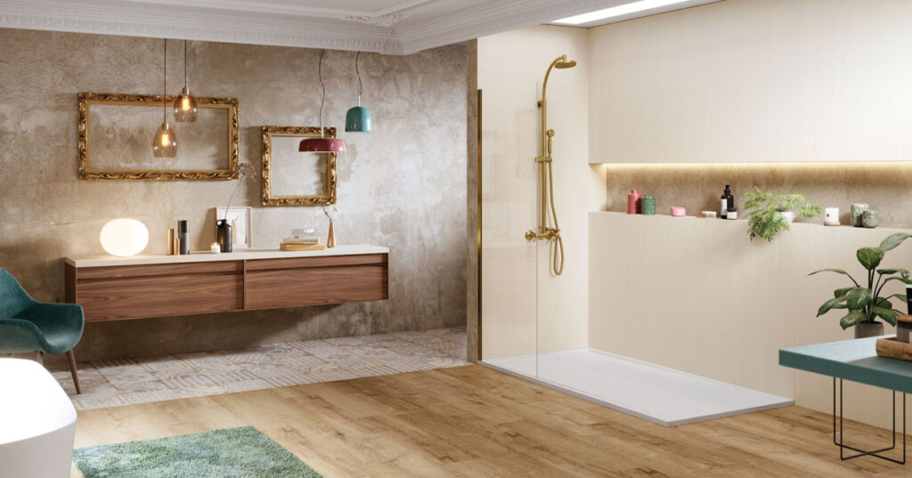 In contrast, the brand’s new Flow Zero shower tray, with its smooth matt finish, lends itself beautifully to the innovative soft lines of the tray, directing the water towards an almost invisible grate under which the water glides.