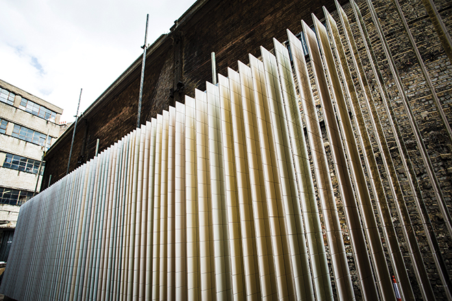 The striking installation, entitled ‘Verve’, was commissioned specially for the festival as part of the CDW Presents series, transforming the outside of The Shed at Design Factory. It was inspired by rows of dominoes and created with more than 6,000 tiles from the iconic British-made Prismatics range, each set into hundreds of rows of protruding ‘blades’.