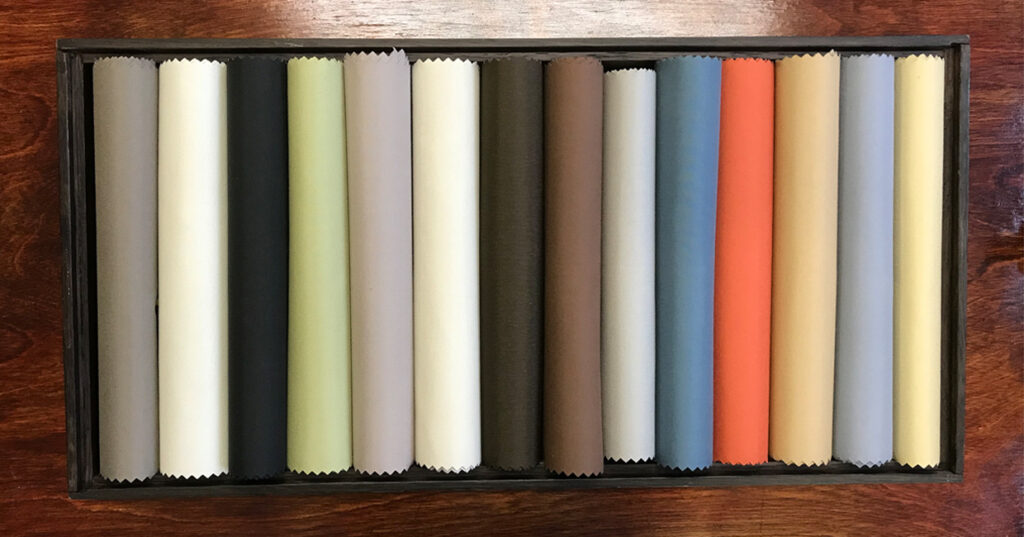 The two new collections will accompany Divo, a matt, cotton-look, blackout plain (launched in 2019), and more familiar blackouts including our base-cloths for printed designs. Achieving full blackout, Divo provides a simple, neat, budget solution for commercial windows.
