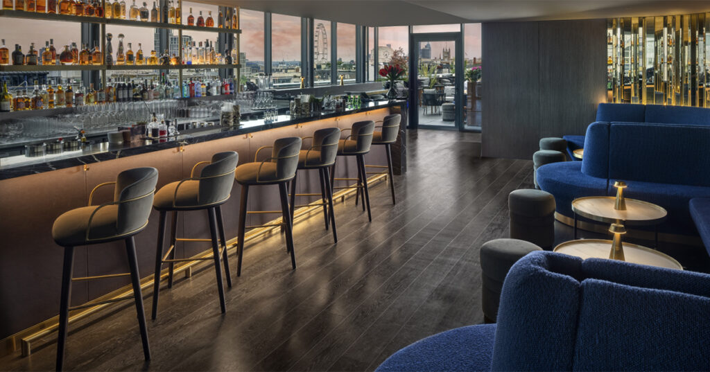 From the rooms, to the rooftop bar to the upcoming signature restaurant, Parla’s touch is everywhere; and maybe more so when sitting comfortably on one of our Capri Bar Stools at the Rooftop Bar, sipping a cocktail and enjoying the panoramic view of iconic London buildings. This semi open air rooftop bar, which is a new addition to the building is definitely the first destination to start a summer evening in London.