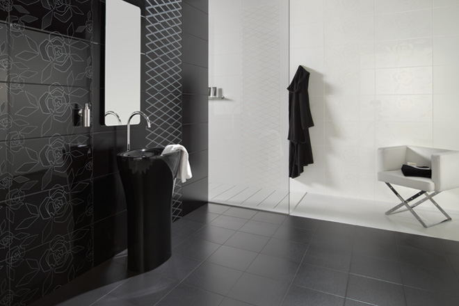 The D.Victoria decor recreates the embroidered items included in Juan Vidal’s textile collection – on this occasion produced in glass and embedded in the ceramic tiles, forming various floral motifs that can be mixed and matched.