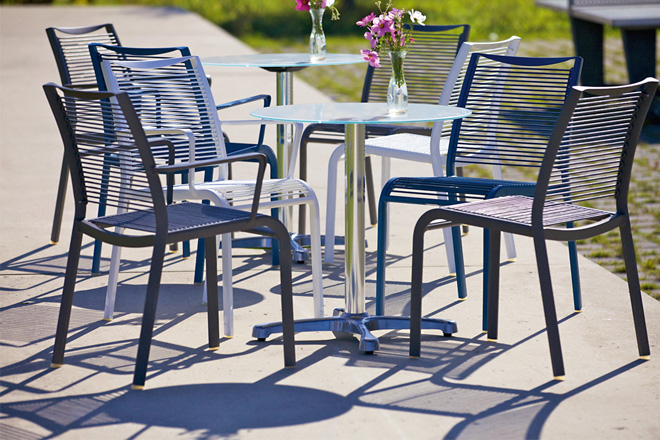 The retro-style and flowing lines of the transparent Elysée chair is set to be popular for both outdoor and indoor use. Comfortable, lightweight and easy to clean, Elysée features waterproof cushions – which are available in a wide range of colours and materials ­- and integrated floor gliders that help to prevent damage to the floor.
