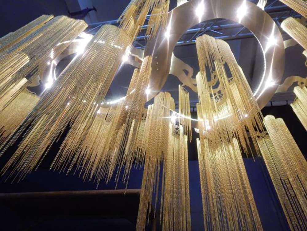 The body or ‘branch’ consists of a steel frame, while the ‘canopies’ are made out of elegant drops of chain. The weight of the chain causes the branch to collapse downwards and inwards forming the elegant spiral shape for which the chandeliers are named.