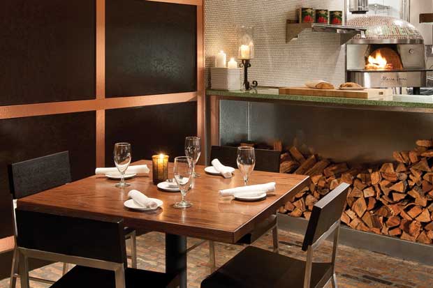GrizForm Design Architects drew on Chef Aielli’s Italian heritage in the design. The dining side has a warm, rustic and homely feel, and is a little rough around the edges with wood tables, brick floors, and terrazzo counters. The kitchen – complete with a copper-clad, wood-burning pizza oven – is open for all to see. Pictures featuring both unknown and celebrated Italians – including Toto and Sophia Loren – enjoying Italian feasts are lined along the left wall.