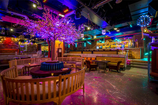 A pulpit has been appropriated as a DJ booth, while a reclaimed confession box has been transformed into a photo booth. The quirky bar is held up by a collection of mantelpieces, with Geisha-dressed hostesses, wallpaper murals and a majestic Cherry Blossom tree combining to create a deeply atmospheric space.