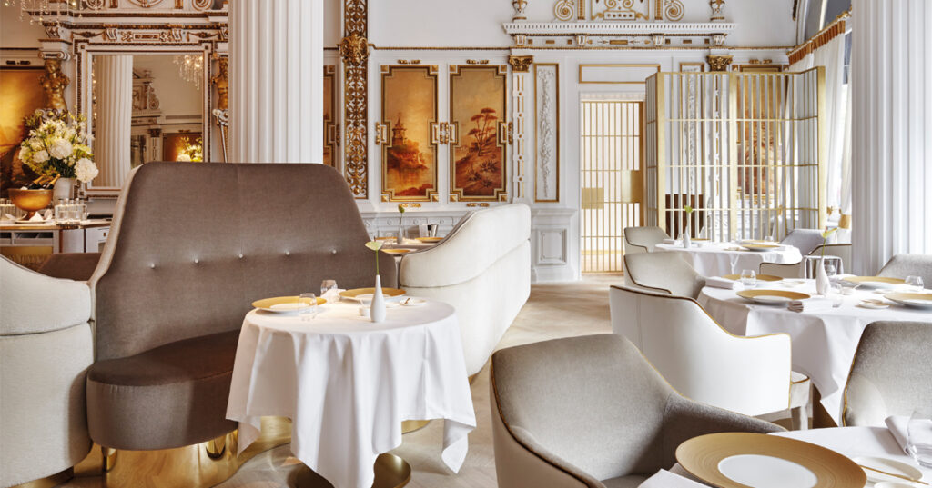 Pictured L-R : Royal Lancaster London – Lounge; David Morris, Creative Director of Studio Proof; Royal Lancaster London – Guestroom; Hotel NH Collection Amsterdam Grand Hotel Krasnapolsky – The White Room