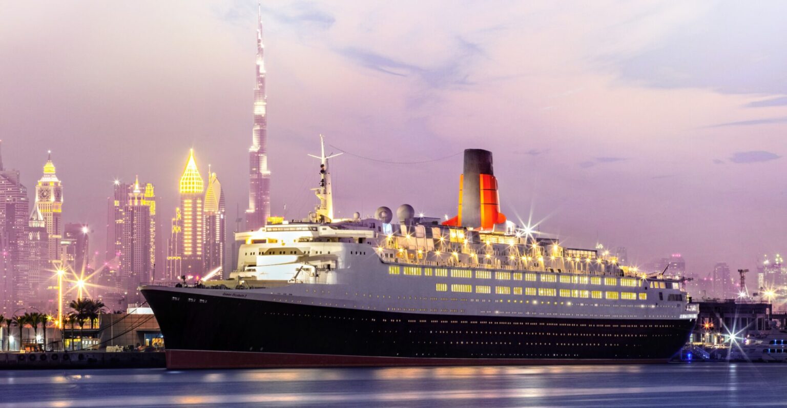 Situated in Dubai’s Port Rashid, the QE2’s location is in close proximity to Sheikh Zayed Road, providing easy connection to every main attraction the city has to offer. Dubai International Airport, Dubai Mall, Burj Khalifa and La Mer Beach are all located less than 20 minutes away, while the Palm Jumeirah and Mall of the Emirates are located 35 and 29 minutes, respectively.