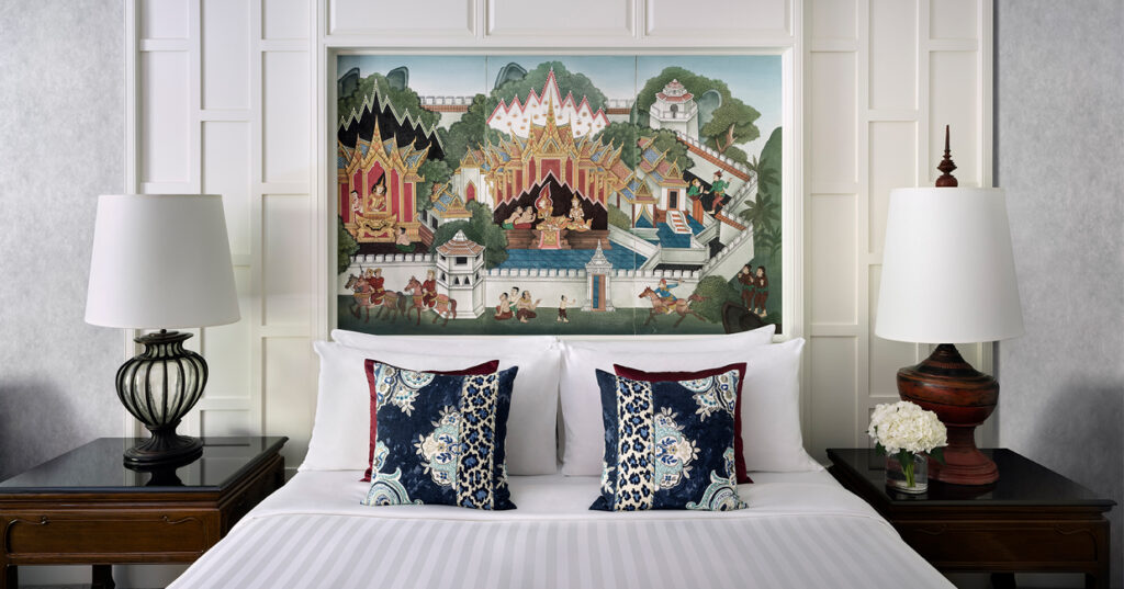 Using elegant regional undertones, typical Asian details were eschewed with the design instead paying homage to Thai palaces that have been constructed with European influences. Thai silk has been used as wall panels to give a simple and elegant finish, a refined reflection of Thailand, and an antique map of Bangkok in the Deluxe rooms provides an interesting conversation piece.