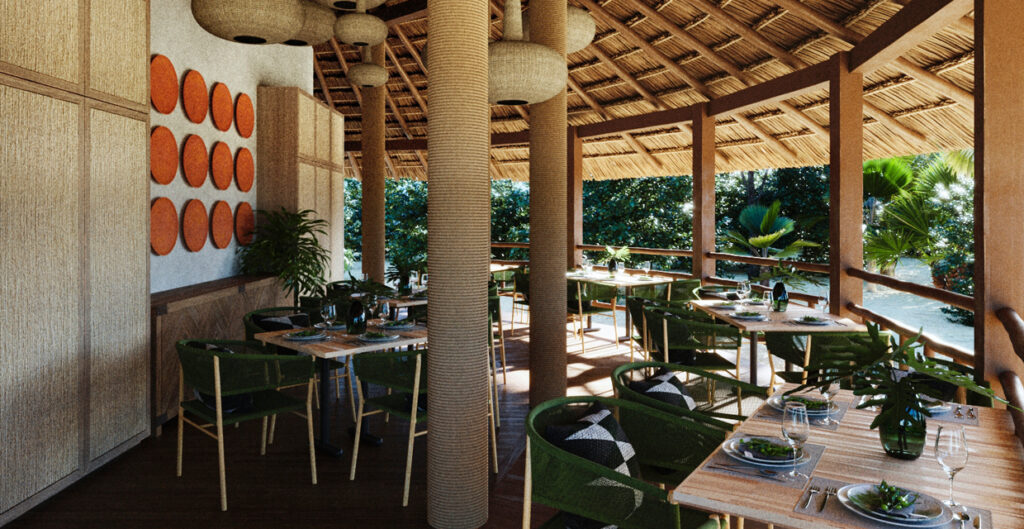 The property includes a thatched-roof gourmet restaurant, an oceanfront wellness cabana, gym, outdoor wellness esplanade for yoga and meditation, a new rooftop lounge and bar overlooking sunset views, as well as a 200 metre private beach dotted with canopy daybeds, tipis, and hammocks gently billowing in the tropical breeze.