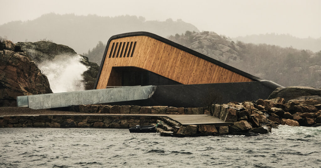 Snøhetta, has completed work on Europe’s first underwater restaurant – Under. Situated in Lindesnes, at the southernmost point of the Norwegian coastline, Under’s 34m long monolithic form breaks the surface of the water to rest directly on the seabed five meters below.
