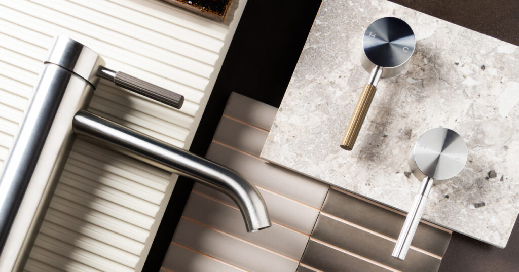In contrast, Studio 316 is a study in understated sophistication. Blending Nordic minimalism with luxurious detail, this collection centres on 316 Grade Stainless Steel mixers and accessories – suitable for indoor and outdoor use. Distinctive curved forms and fluted handles are paired with eight expressive colour accents, including Turquoise, Caramel, Cocoa, Truffle, Lip Gloss, Mandarin, Midnight and Raspberry. With coordinated vanity units, washbasins, bathtubs and shower columns, Studio 316 brings a seamless, textural beauty to both residential and hospitality projects.
