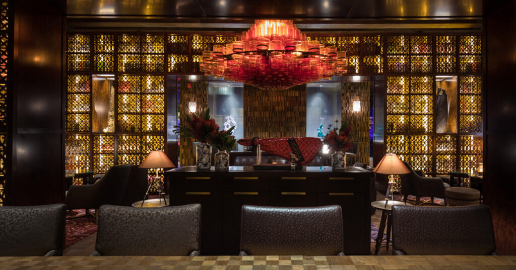 EQUIS’ striking interiors pays homage to ancient, timeless Beijing traditions while also celebrating the best of modern China and the world, with dramatic spaces and eclectic vibes created through the carefully selected materials including woven metal, antique timber, and the distinct use of glass cubes and mirrors, fireplaces, pieces of genuine Chinese porcelain, antique Chinese bricks and roof tiles.