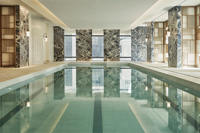 A state-of-the art 6,000 square foot (560 square metre) fitness centre boasts inspiring views of the Oculus and the World Trade Centre, while the 75 foot indoor pool is surrounded by restful lounge furnishings and an outdoor terrace, a rare indulgence in Manhattan.