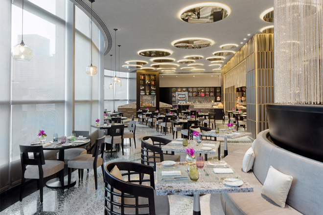Sleek and vibrant with an energetic, youthful edge, the 142-seat, lobby-level restaurant celebrates four distinct flavours and cooking styles: Mediterranean, Arabic, Indian and Asian.