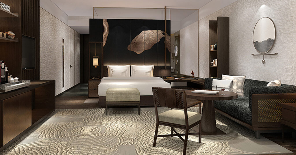 All guestrooms, spanning from 45m² to 98m² with 3.2-meter-high ceilings, are tastefully appointed with elegant Chinese accents and are equipped with the latest in-room technology, walk-in closets, and modern amenities to ensure guests’ every comfort.