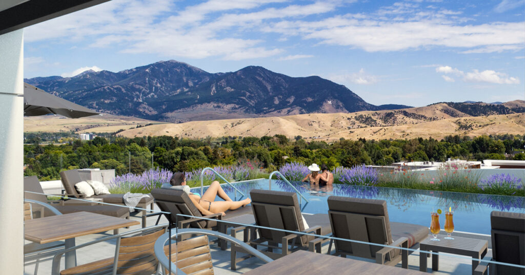 The new Kimpton will also feature a concert hall designed to attract top musical performances, as well as a rooftop pool and bar where guests can enjoy breathtaking views of the Bridger Mountain Range.