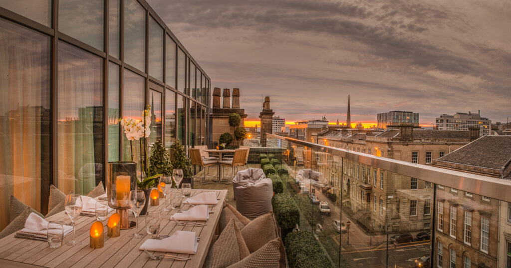 The 113 rooms and suites offer a sense of warm sophistication with marble bathrooms, luxury amenities, natural light, and a refined design that serves as the ideal backdrop for any Glasgow getaway.