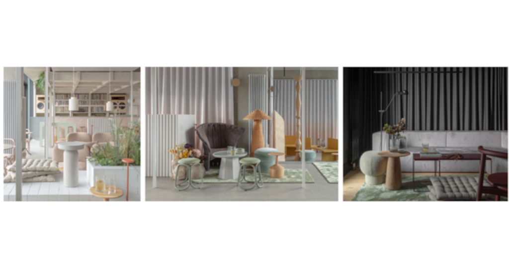 Areas on the ground floor including the cafe, bar and restaurant; ANIMA, reception lounge and co-working spaces are connected (in a subtle nod to the vestiges of the Berliner Mauer) by the use of non-continuous walls, creating implicit “neighbourhoods” in the space. Built-in seating and planters are fabricated from locally-sourced bricks comprised of recycled sand and lime, while furnishings follow a cohesive palette of timber, cane, fabric and cord, surrounded by verdant vegetation spilling out of planters and cascading from the ceiling.