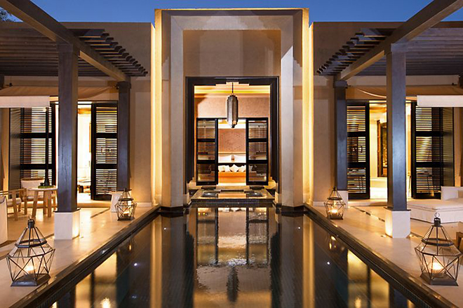 The elegant and contemporary resort is set against the backdrop of the snow-capped Atlas Mountains, amidst 20 hectares of landscaped gardens, filled with roses. Located just 10 minutes from the heart of the city and the historic Medina, the hotel offers 54 private villas inspired by Berber and Moorish influences.