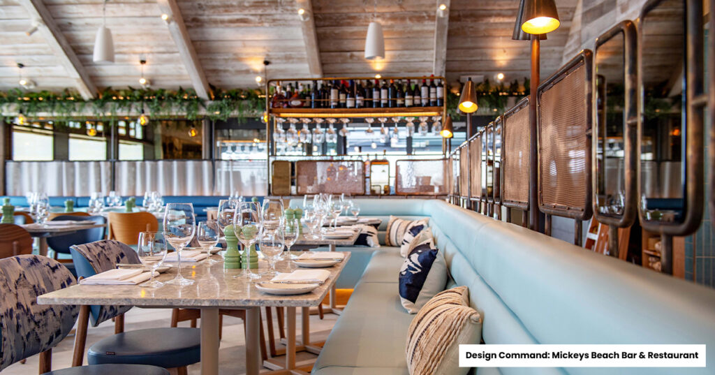 Design Command highlighted projects designed to relax and unwind, evoking an overall sense of escapism for guests. These included Mickeys Beach Bar & Restaurant (pictured), and Café Patisserie Glacerie.