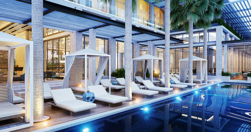Renaissance Cancún Resort & Marina thrives from stark contrasts created through materiality, different textures and a dynamic color palette – a showcase of the brand’s refined design strategy, which reflects what the Renaissance brand offers today: a sense of clever theatricality and an open invitation to experience something a little different both inside and out of the hotel.