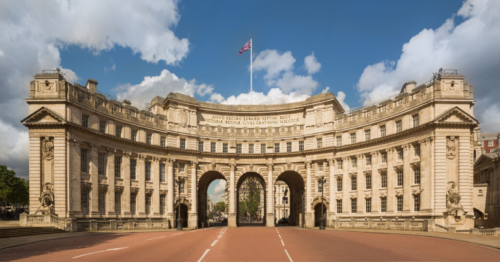 Admiralty Arch was commissioned by King Edward VII in memory of Queen Victoria, and was designed by Sir Aston Webb, who was also responsible for The Mall and main facade at Buckingham Palace. In addition to housing the official residences of the First Sea Lords, Admiralty Arch has served as a centre for clandestine wartime intelligence efforts, a Royal Navy outpost, and latterly as a centre for the UK Government’s Cabinet Office.