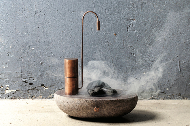 The ‘Steam’ section of the exhibition reveals a variety of approaches to the sauna: from the gritty Gothenburg Public Sauna by Berlin-based Raumlabor, made from recycled materials and conceived as a catalyst to transform the former industrial port into a new urban neighbourhood; to the surreal mobile pop-up saunas by Czech architects, H3T, that have been suspended from a bridge or placed in the middle of a lake.