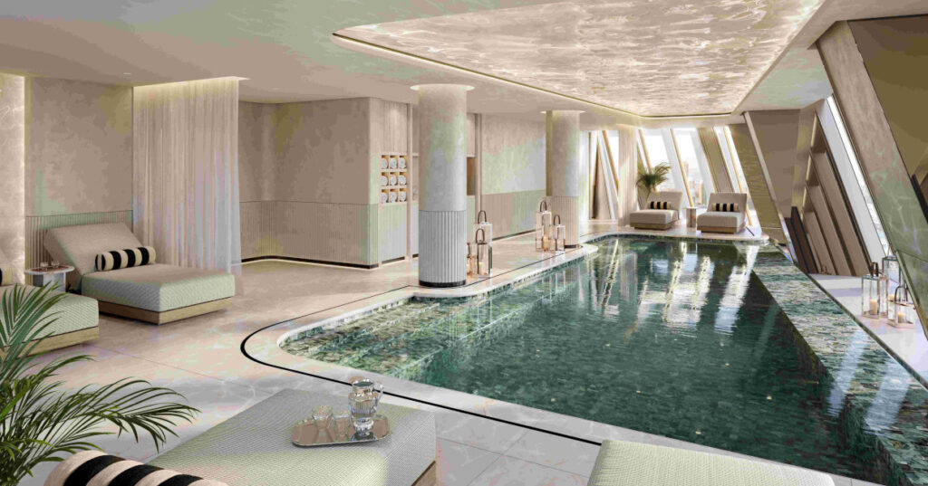 Inside the majestic mixed-use development, Baccarat Hotel will offer discerning visitors the ultimate in luxury accommodation, reflective of the brand’s craftsmanship and meticulous attention to finer detail. The Grand Salon with its high ceilings and soft drapery, is bathed in a natural glow from the Baccarat crystal chandeliers and accentuated in the brand’s signature red colour. As the sun goes down, the signature Baccarat bar beckons with its mirrored luminosity and swathes of velvet bordering a grand piano as its centrepiece.