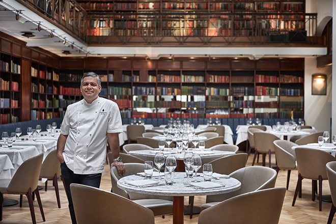 Situated within the grand Grade II Listed Old Westminster Library, The Cinnamon Club’s book-lined shelves and traditional features have been updated and elevated with dashes of colour and contemporary furnishings.