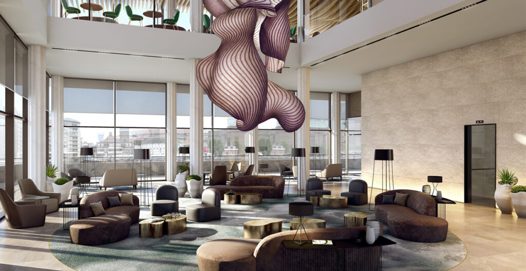 Highly visible from the South Bank, the hotel will also benefit from panoramic views over the River Thames and will complete the northern riverbank walkway between the Tower of London and Millennium Bridge.