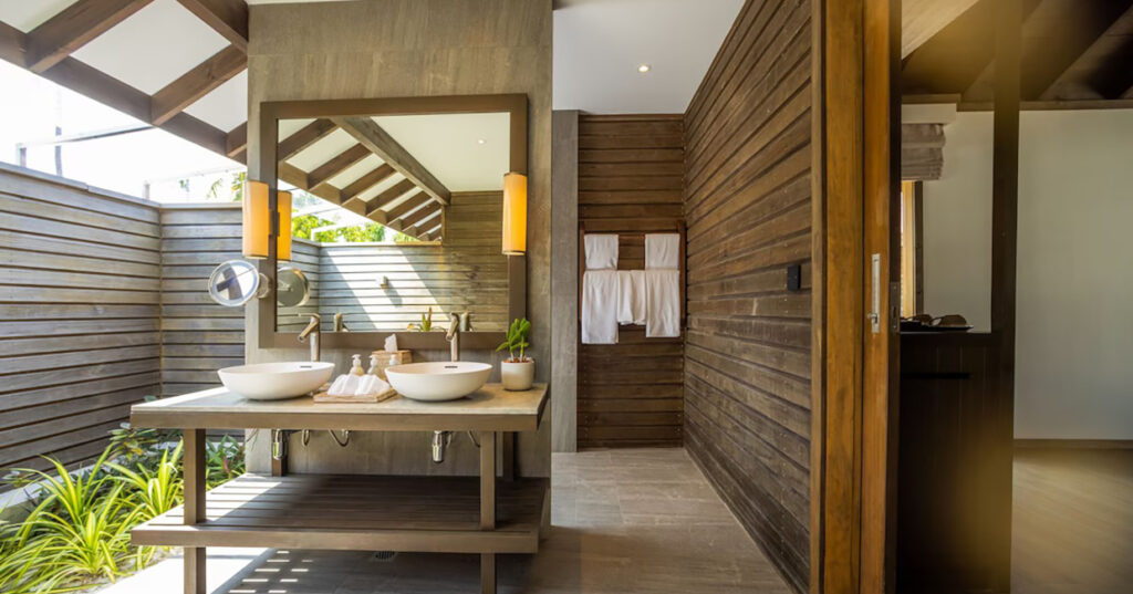 The choice of BAGNODESIGN products reflects the island’s commitment to providing an exceptional guest experience. Whether rinsing off the saltwater after a day of diving or indulging in a rejuvenating shower before a romantic dinner on the beach, the bathrooms offer a sanctuary of comfort and luxury.