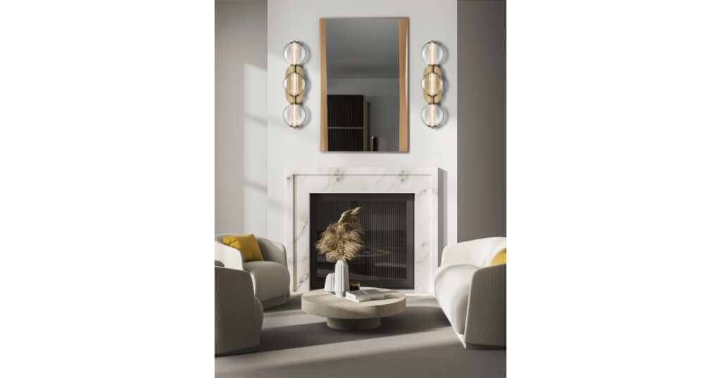 Featured is the three light Atomo wall light from Eurofase. This magnificent family of ceiling pendants and wall fixtures include hand blown glass spheres and a unique and proprietary LED lamping called Crystal Pitch. Faceted crystal gears surround the LED light source to emit spectacular refraction within the crystal glass globe. The wall lights are IP44 rated for use in the bathroom as well as other interior settings and they are available in Polished Chrome or Gold finishes.