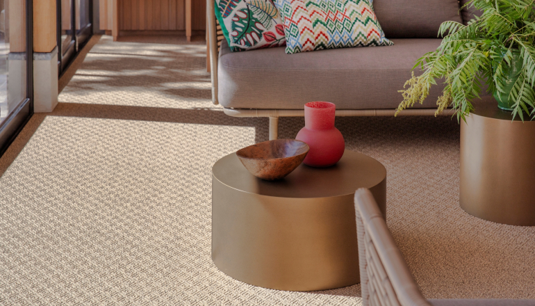 Suitable for use everywhere – indoors and out – it has the look of sisal while outperforming it on resilience and longevity. Hard-wearing, stain-resistant and available in 4m and 5m widths, it’s ideal for busy homes, hospitality spaces and outdoor living, including rugs that can live outside whatever the weather.